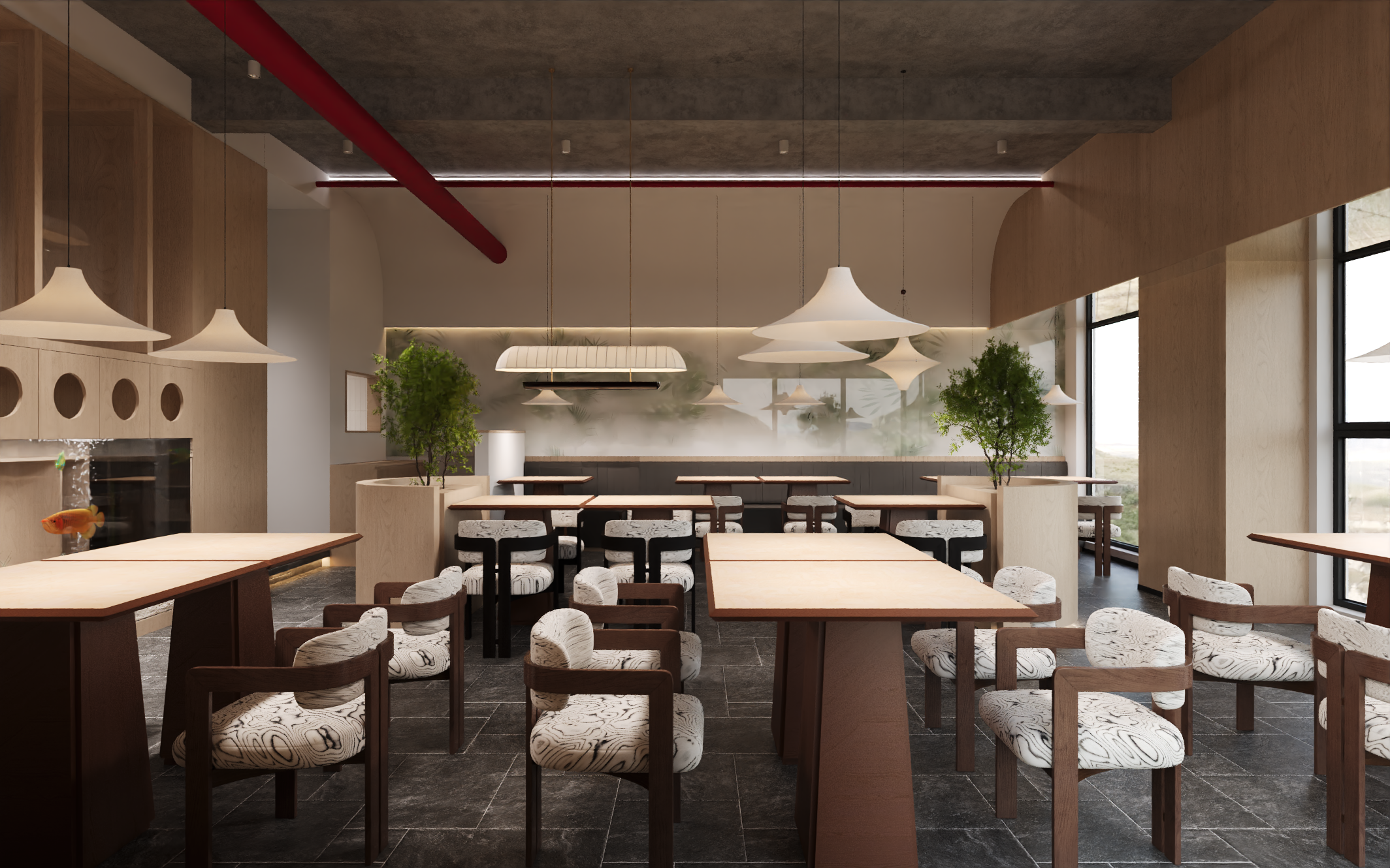 入口區(qū)是消費者進入店鋪的第一印象區(qū)域,應設計得寬敞明亮、引人注目??梢栽谌肟谔幵O置醒目的招牌和吸引人的展示櫥窗,吸引消費者的注意力。展示區(qū)是展示商品的重要區(qū)域,要根據(jù)商品的特點和分類進行合理布局,采用多樣化的展示方式,如貨架展示、模特展示、場景展示等,突出商品的特色和優(yōu)勢。銷售區(qū)是消費者與商品親密接觸的區(qū)域,要保證空間寬敞、通道暢通,方便消費者瀏覽和挑選商品。收銀區(qū)應設置在店鋪的顯眼位置,方便消費者結賬,同時要注意收銀臺的設計要與整體裝修風格相協(xié)調。倉儲區(qū)要合理規(guī)劃貨物的存放空間,保證貨物的儲存安全和管理方便。