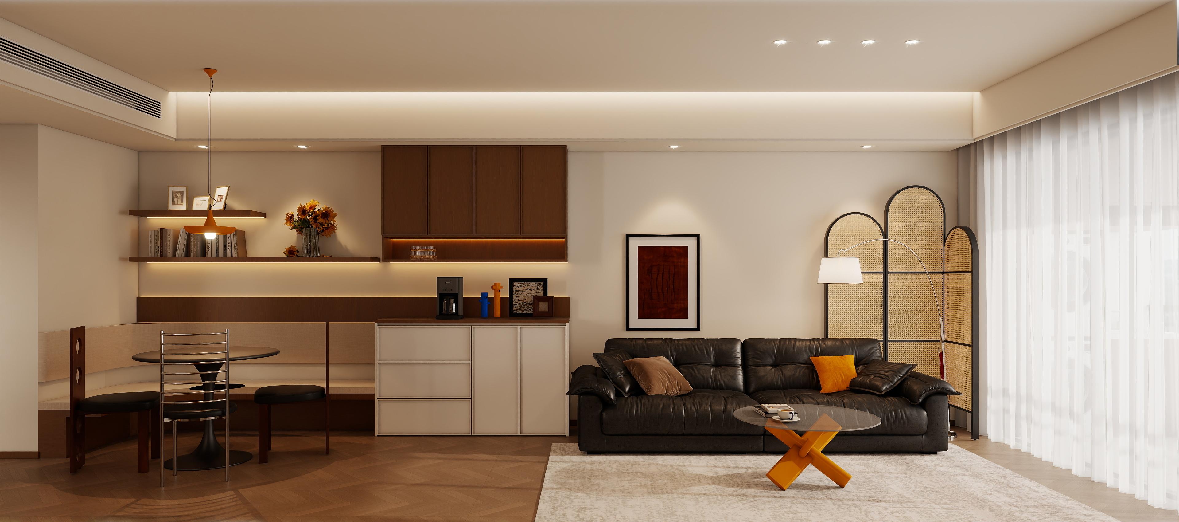 小戶型最頭疼的問題是“空間小、功能亂”,而無主燈能通過光的設計,讓同一空間“變身”多種功能區(qū)。比如,客廳和餐廳連在一起時,傳統主燈會讓兩個區(qū)域的光混在一起,顯得雜亂。無主燈會用不同的光源區(qū)分:客廳用筒燈和落地燈,餐廳用吊燈或射燈,中間用燈帶過渡。這樣,看電視時不會影響吃飯的光線,吃飯時也不會覺得客廳太暗。