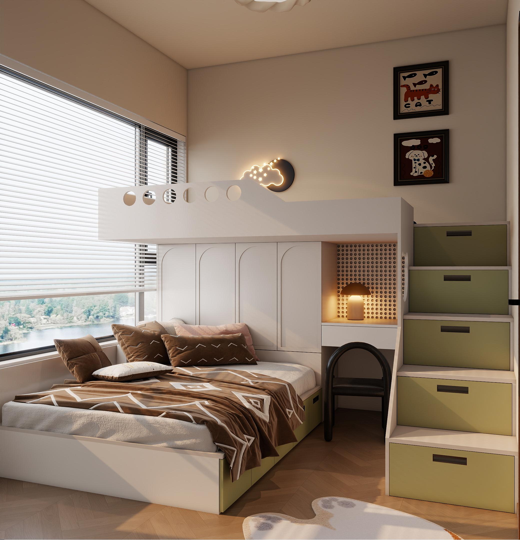 無主燈設計的的客廳不再需要一盞吊燈“統領全局”,而是用筒燈、射燈、燈帶、落地燈組合:看電視時,只開沙發(fā)旁的落地燈,避免屏幕反光;招待客人時,打開天花板上的筒燈,讓整個空間明亮通透;想營造氛圍時,關掉主燈,只留電視背景墻的燈帶,瞬間有了電影院的沉浸感。臥室的無主燈設計更注重“溫柔”。很多人睡前喜歡刷手機或看書,如果只有一盞吸頂燈,要么太亮刺眼,要么太暗費眼。無主燈會用床頭壁燈、閱讀燈和小夜燈組合:睡前開壁燈,光線柔和不傷眼;起夜時,小夜燈自動感應亮起,不用摸黑找開關;早上起床,窗簾盒里的燈帶慢慢變亮,像自然光一樣喚醒身體。這種“按需用光”的設計,讓光不再是簡單的照明工具,而是貼心的生活助手。